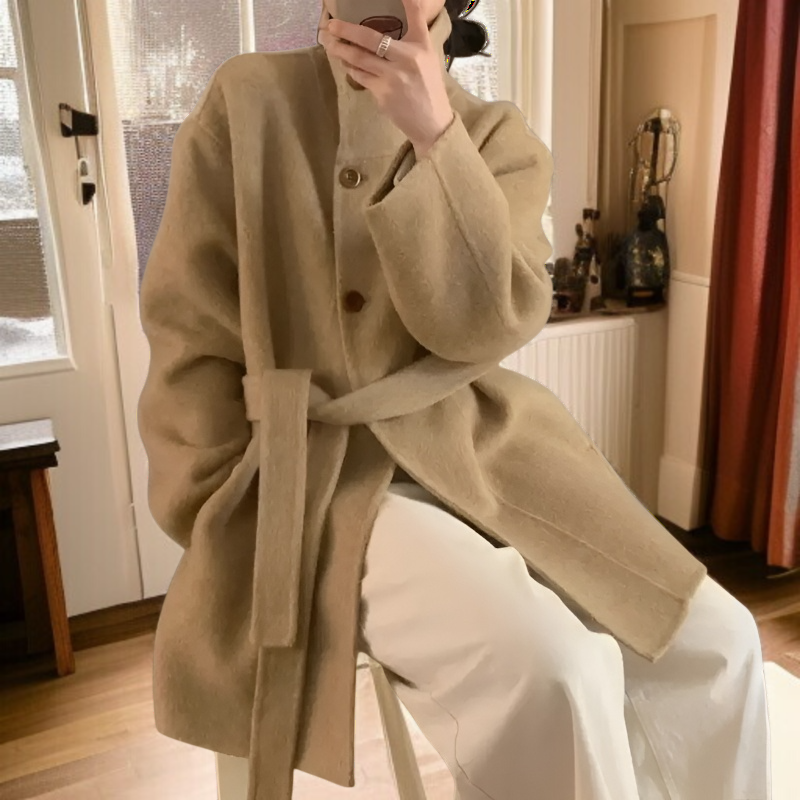키 작은 가을 겨울 루즈핏 모직 코트 차이나 모직 코트 나른한 모직 코트